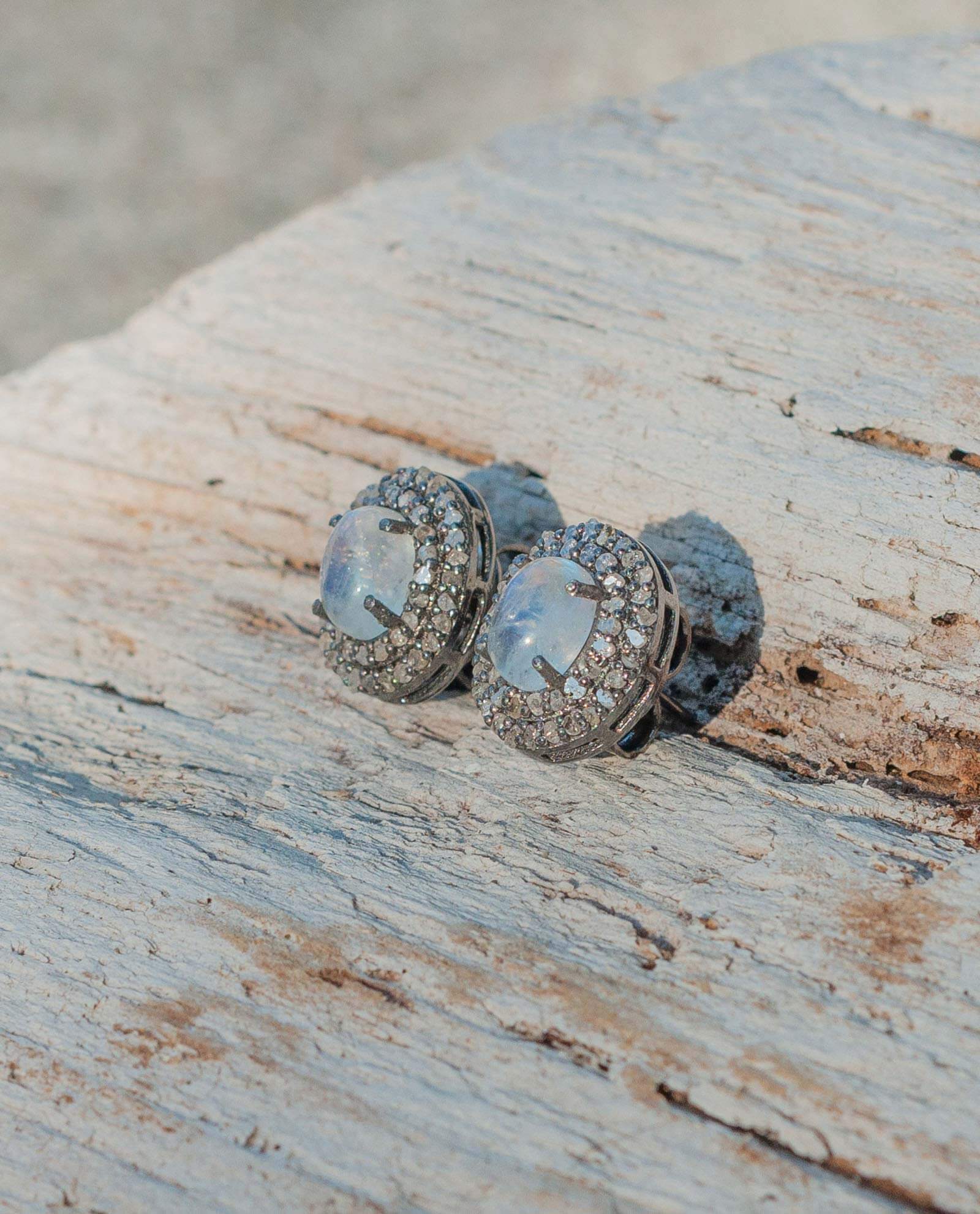 Moonstone Double Diamond Stud Earrings