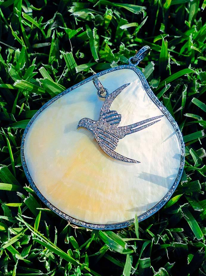 Large Diamond Shell Pendant Dia .64 cts. Paired with Sorrowing Dove Diamond Pendant.